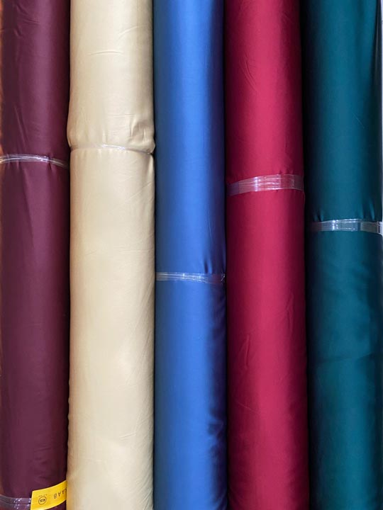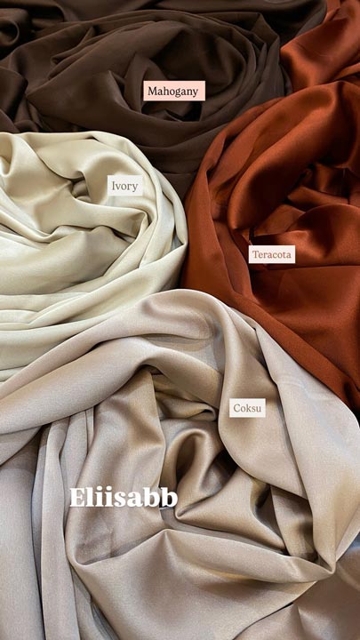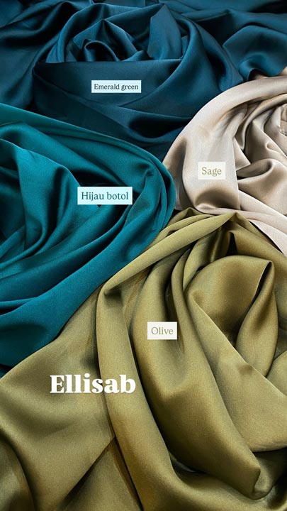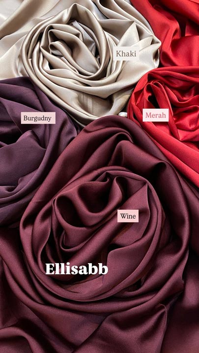 Kain satin berkualitas tinggi dengan tekstur yang sangat halus, lembut, dingin, dan memiliki kilap yang mewah, tidak mudah kusut, dan tidak menerawang