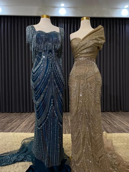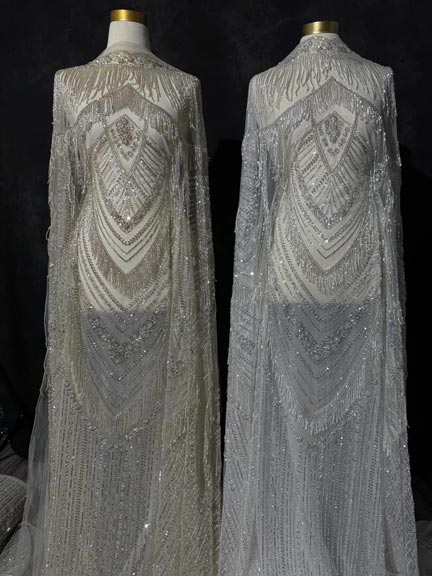 Rumbai ini dibuat dengan meronce manik-manik satu per satu, baik kecil maupun besar, lalu menguncinya pada kain tile sehingga membentuk efek menjuntai.